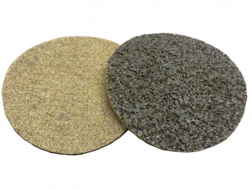 Discs are formed by non woven nylon impregnated with abrasive grain and bonded together with synthetic resins