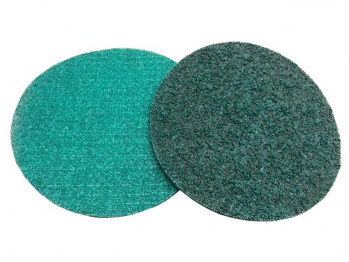 Discs are formed by non woven nylon impregnated with abrasive grain and bonded together with synthetic resins